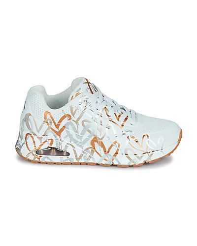 Baskets basses Skechers UNO Blanc Disponible en taille femme. 36,37,38,39,40,41. Issue de la collaboration Skechers x JGoldcrown avec les dessins iconiques #Lovewall de l’artiste muraliste Semelle intérieure confortable à mémoire de forme Skechers Air-Cooled Memory Foam® Semelle intermédiaire à coussin d’air visible Skech-Air® D.Femme > Chaussures > Baskets..